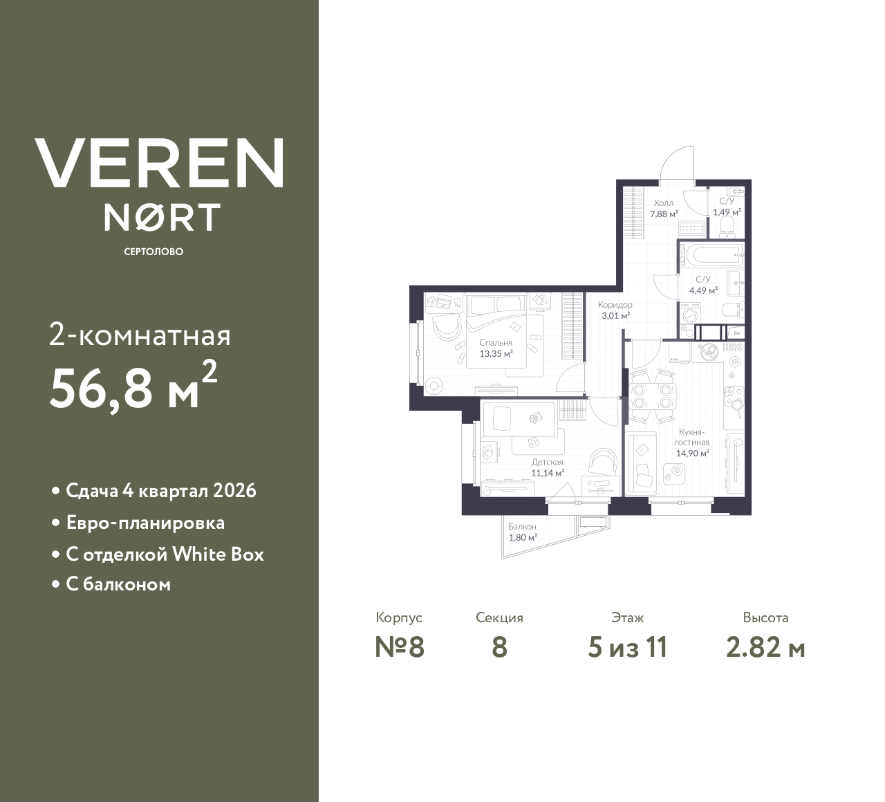 56.8 м2